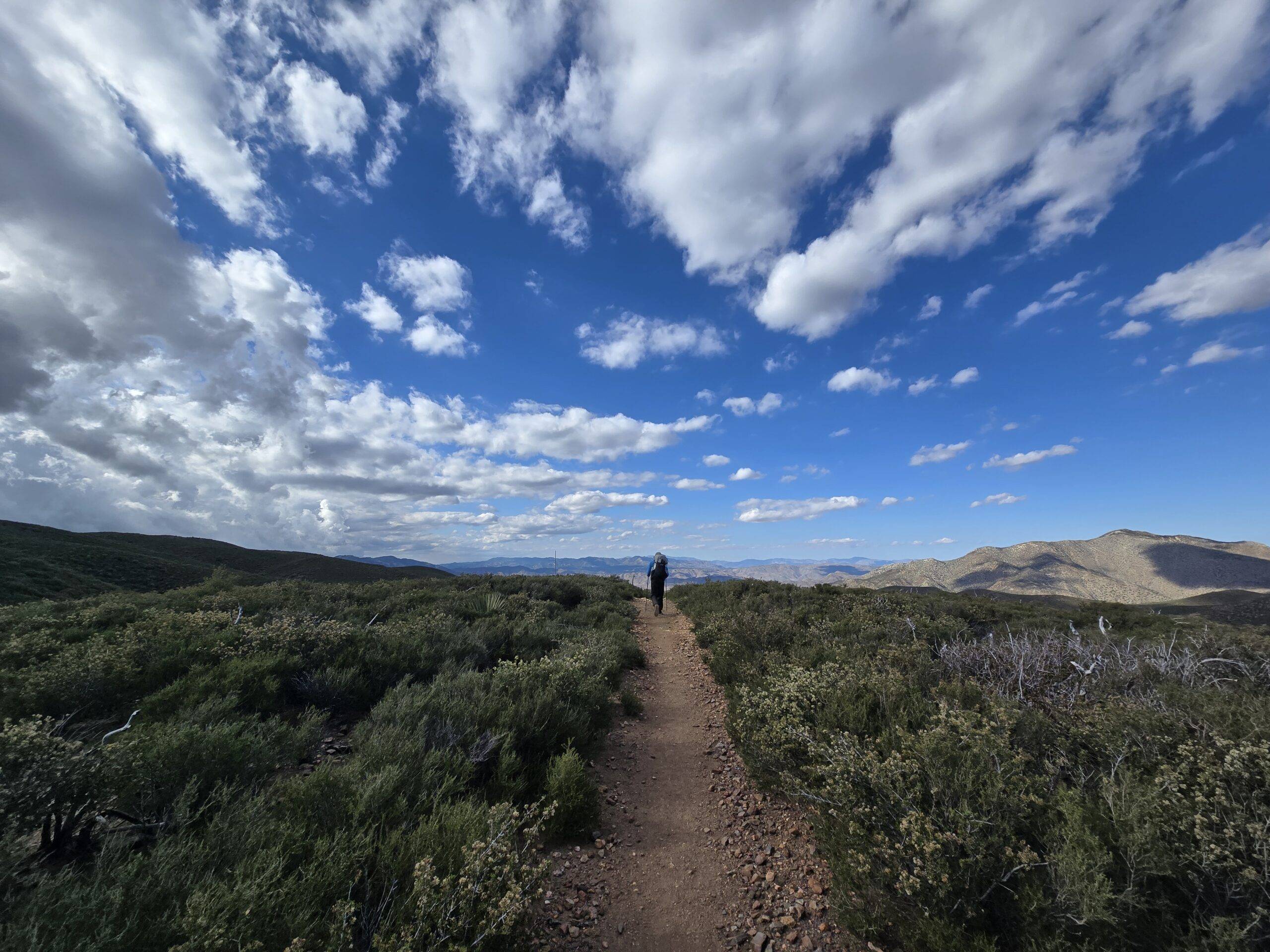 Tijekom 135 dana hoda, Šimleša je prošao 4.482 kilometra kroz pustinjske predjele južne Kalifornije, visoke planinske masive do 4.400 metara nadmorske visine te opožarene dijelove sjeverne Kalifornije. Dnevne dionice kretale su se od 35 do 55 kilometara, uz brojne susrete s divljim životinjama poput medvjeda i čegrtuša.